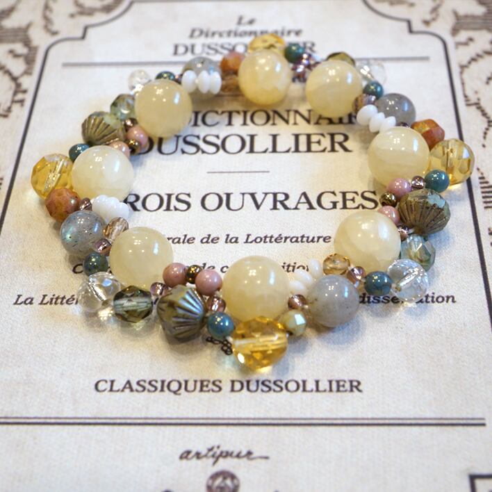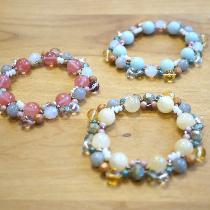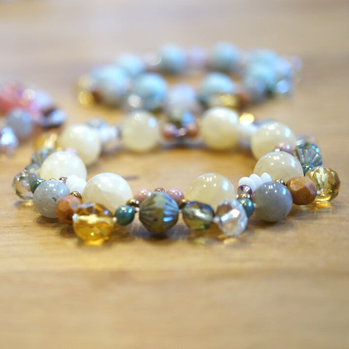 ウィリアムモリスの色彩を参考に天然石とチェコビースで作りました。